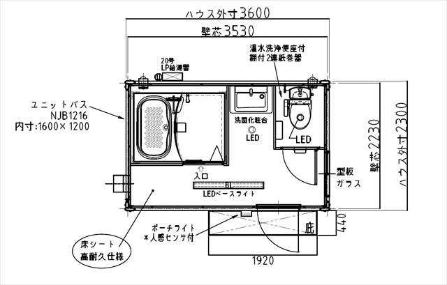 HOME > 商品一覧 > シャワー室・浴室 > ★浴室(リニューアル) > L-UB-36型浴室ハウス 黒木目仕様